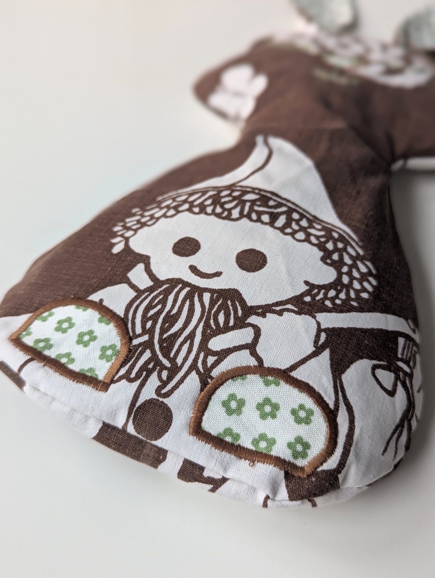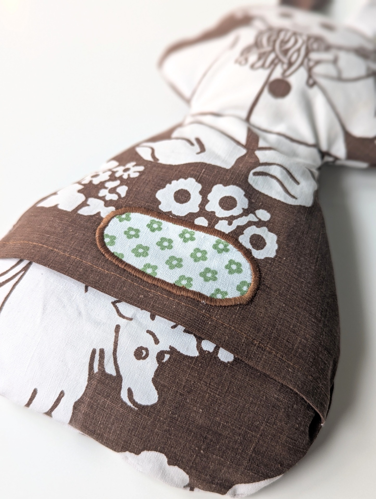 Praktiskt avtagbart ytterfoder i återbrukad bomullstextil, som tål maskintvätt i upp till 60grader. En funktion jag själv ofta saknat i andra traditionella vetevärmare. Det havrefyllda innerfodret bör inte blötas, men det kan effektivt rengöras med bikarbonat eller något liknande för att hållas fräscht.