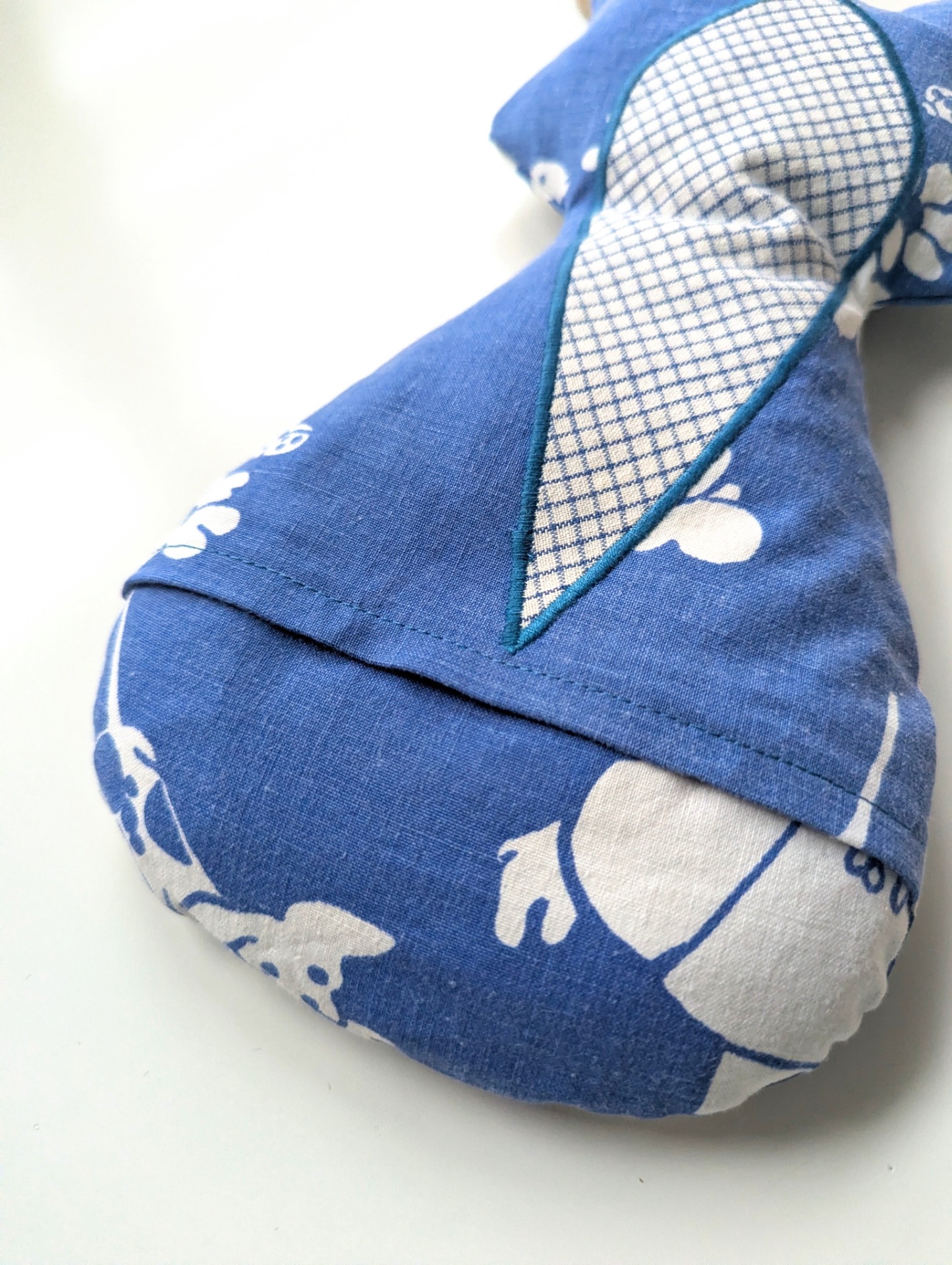Praktiskt avtagbart ytterfoder i återbrukad bomullstextil, som tål maskintvätt i upp till 60grader. En funktion jag själv ofta saknat i andra traditionella vetevärmare. Det havrefyllda innerfodret bör inte blötas, men det kan effektivt rengöras med bikarbonat eller något liknande för att hållas fräscht.