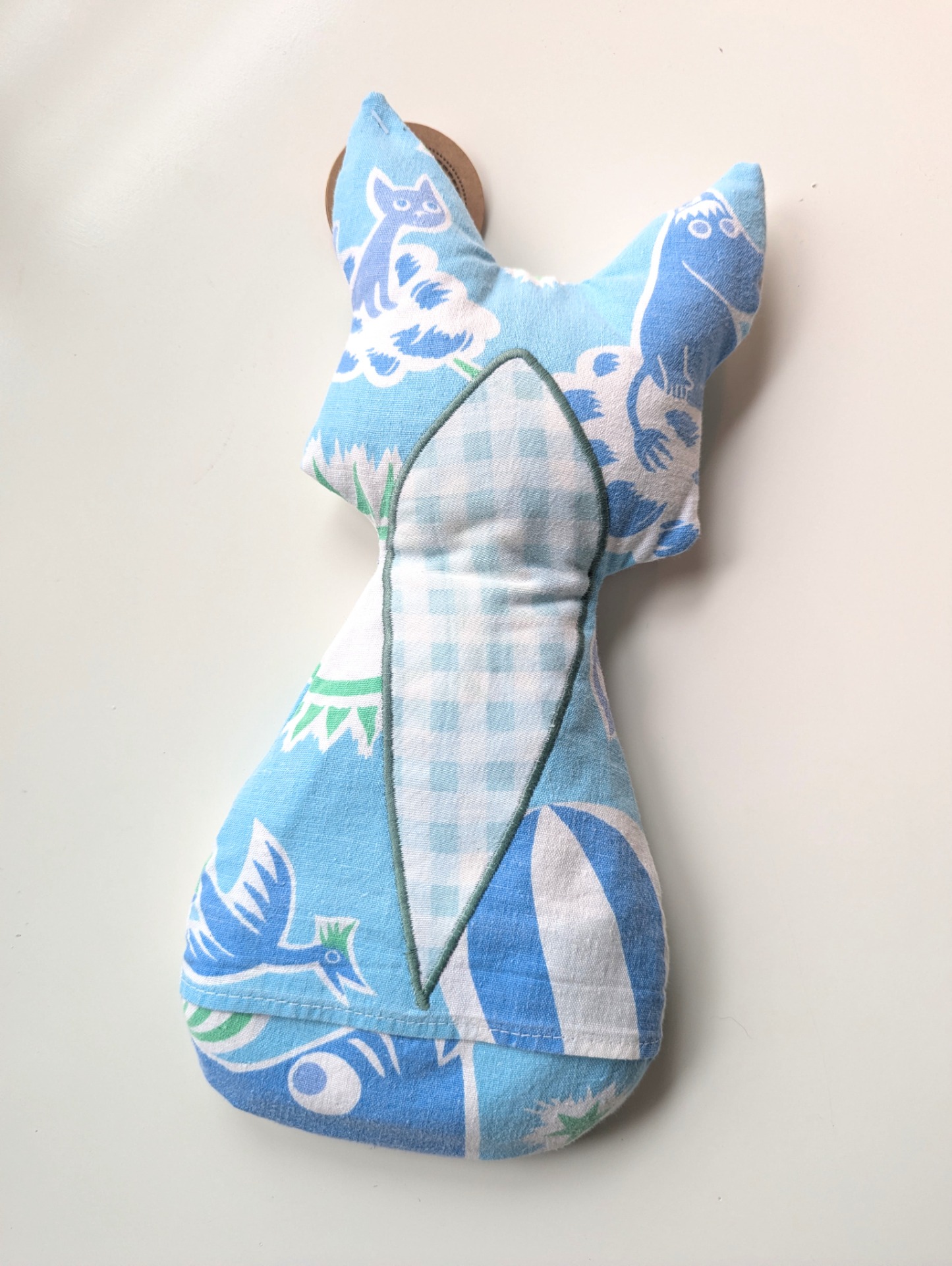 Praktiskt avtagbart ytterfoder i återbrukad bomullstextil, som tål maskintvätt i upp till 60grader. En funktion jag själv ofta saknat i andra traditionella vetevärmare. Det havrefyllda innerfodret bör inte blötas, men det kan effektivt rengöras med bikarbonat eller något liknande för att hållas fräscht.