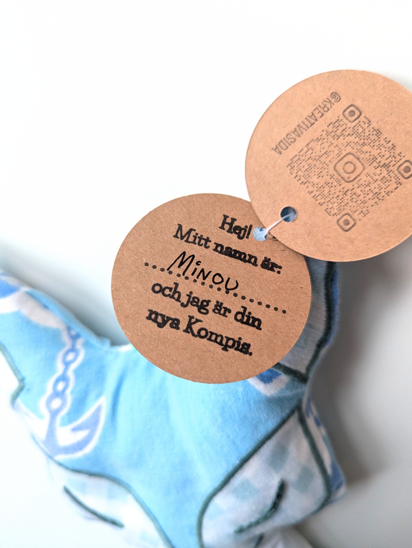 Varje handsydd Kompis är fylld med ekologiskt havre och väger omkring 450. gram. Den kan värmas i mikrovågsugnen eller kylas i frysen efter behov. Kompisen mäter ca. 30x14 cm och är perfekt anpassad för både små som stora barn.