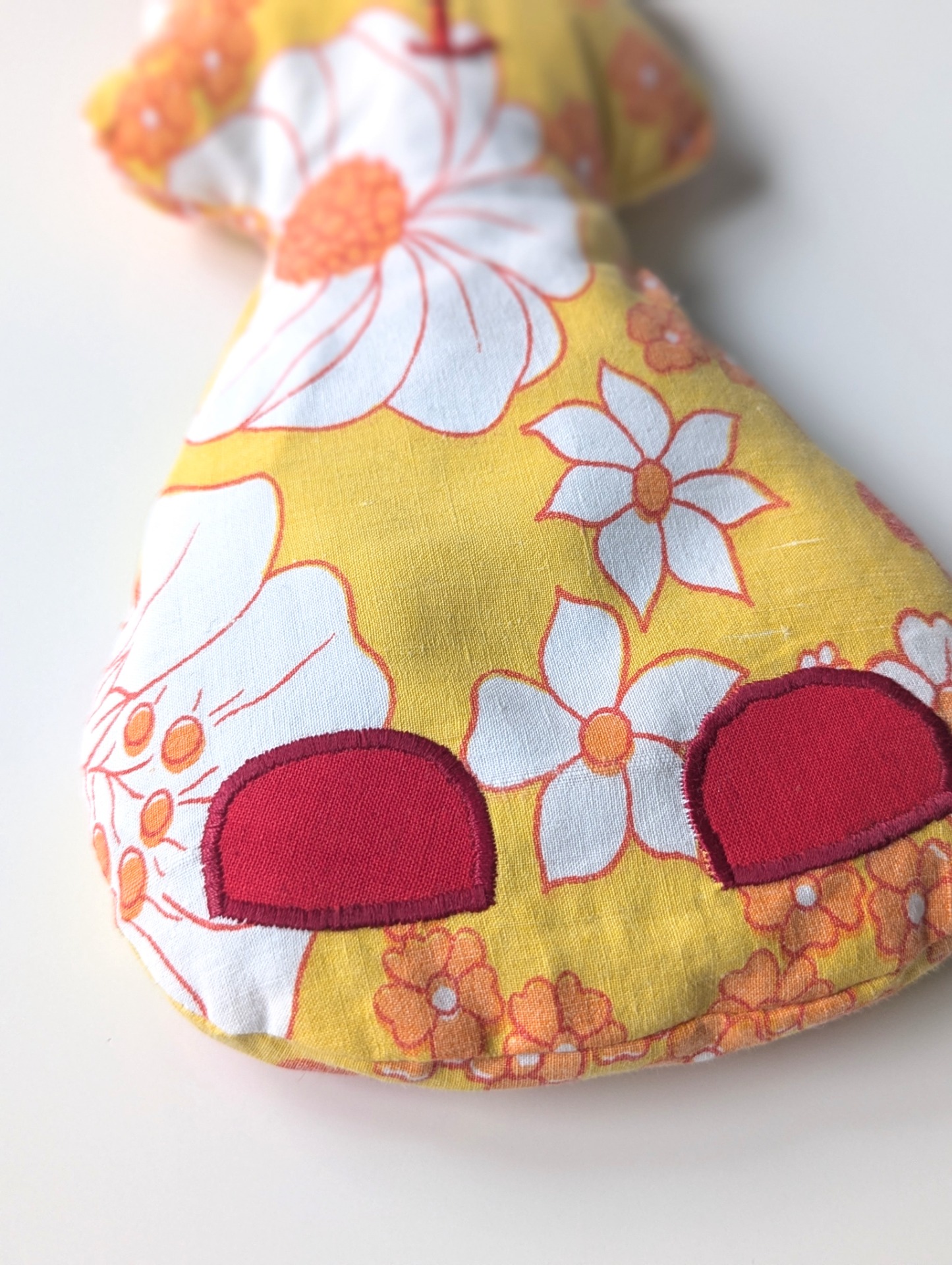 Praktiskt avtagbart ytterfoder i återbrukad bomullstextil, som tål maskintvätt i upp till 60grader. En funktion jag själv ofta saknat i andra traditionella vetevärmare. Det havrefyllda innerfodret bör inte blötas, men det kan effektivt rengöras med bikarbonat eller något liknande för att hållas fräscht.