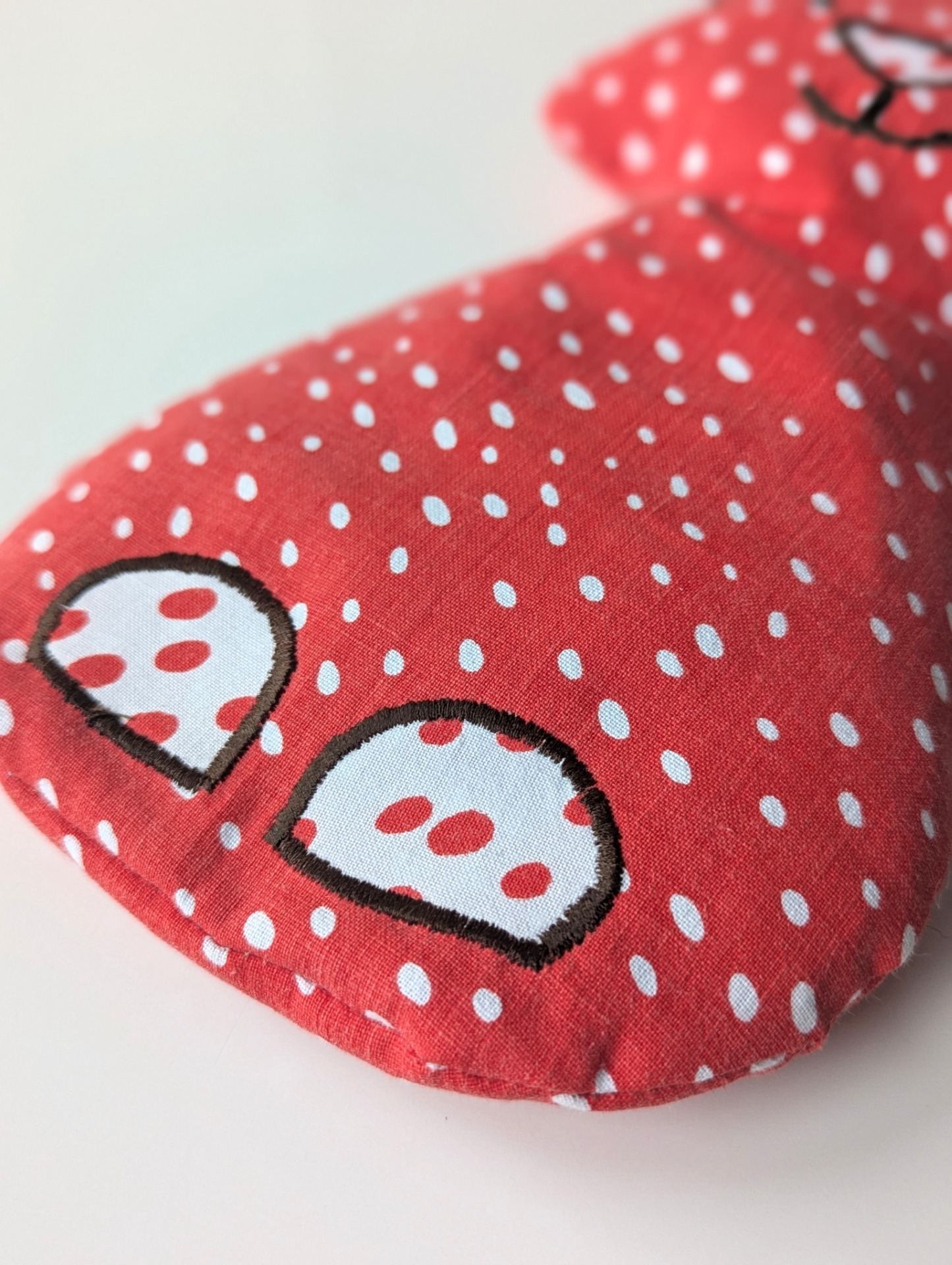 Varje handsydd Kompis är fylld med ekologiskt havre och väger omkring 400 gram. Den kan värmas i mikrovågsugnen eller kylas i frysen efter behov. Kompisen mäter ca. 35x14 cm och är perfekt anpassad för både små som stora barn.