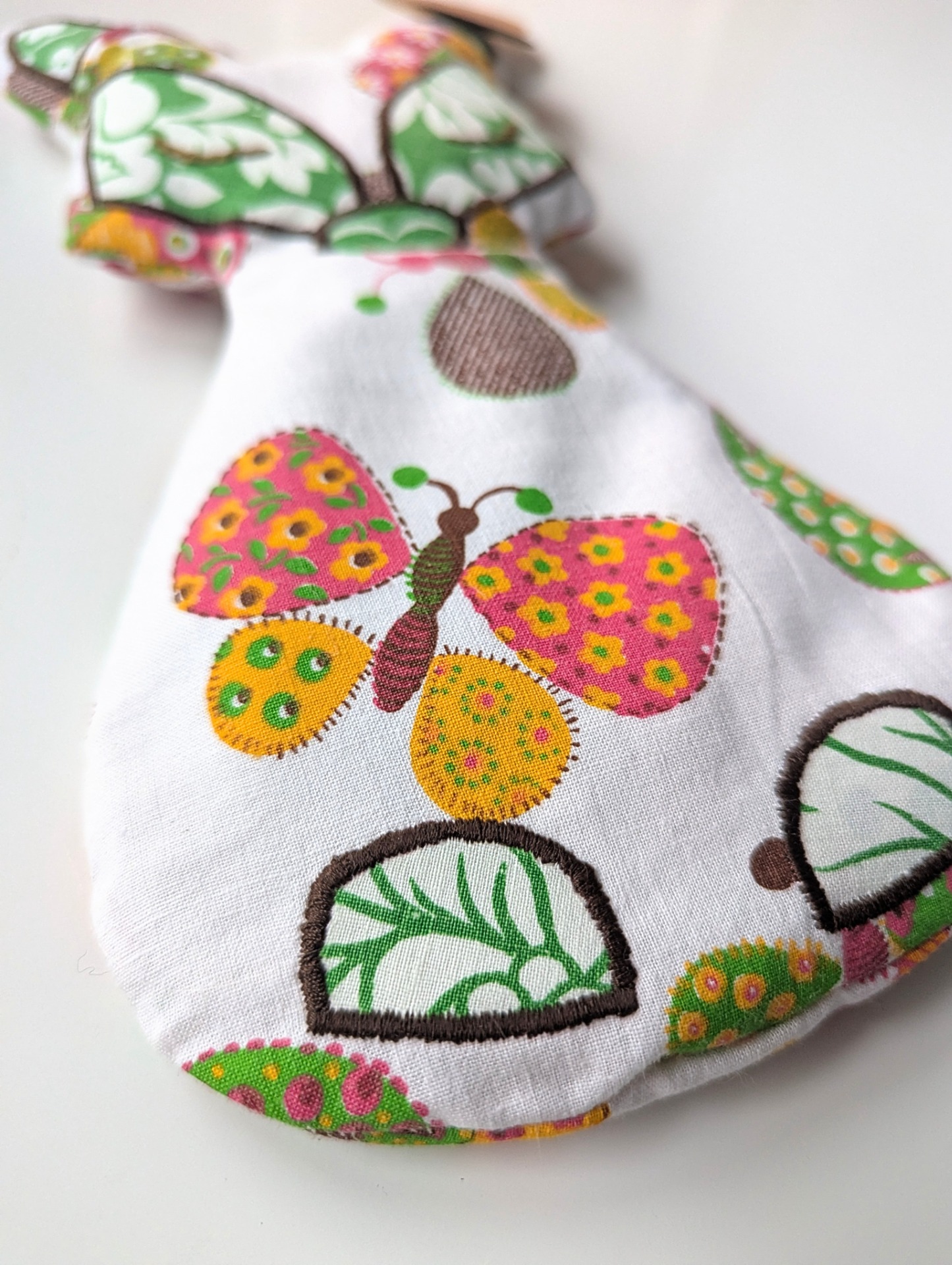 Praktiskt avtagbart ytterfoder i återbrukad bomullstextil, som tål maskintvätt i upp till 60grader. En funktion jag själv ofta saknat i andra traditionella vetevärmare. Det havrefyllda innerfodret bör inte blötas, men det kan effektivt rengöras med bikarbonat eller något liknande för att hållas fräscht.