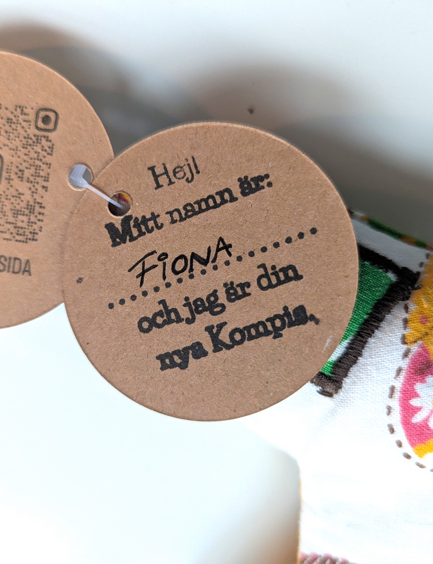 Varje handsydd Kompis är fylld med ekologiskt havre och väger omkring 400 gram. Den kan värmas i mikrovågsugnen eller kylas i frysen efter behov. Kompisen mäter ca. 30x14 cm och är perfekt anpassad för både små som stora barn.